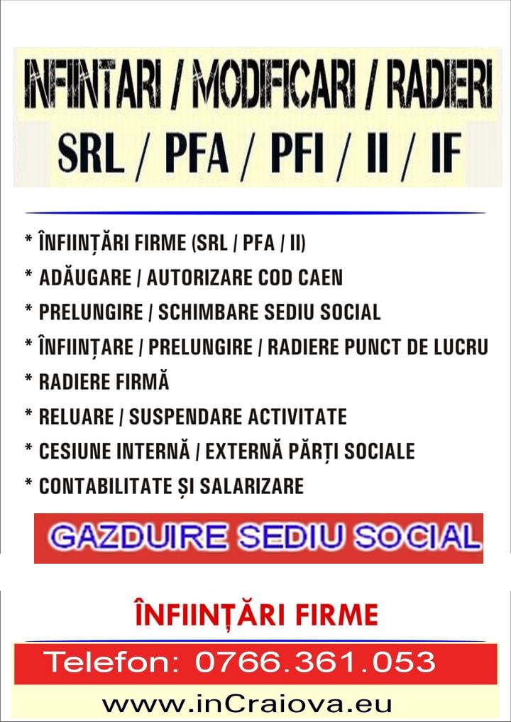 Infiintare Firma Craiova Srl Pfa Acte 2020 Infiintare Firma Urgent Craiova Filiasi Bailesti Calafat Bechet Dabuleni
