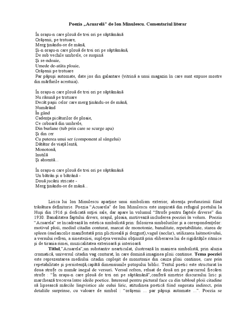 Comentarii Despre Acuarelă Parodie După Ion Minulescu