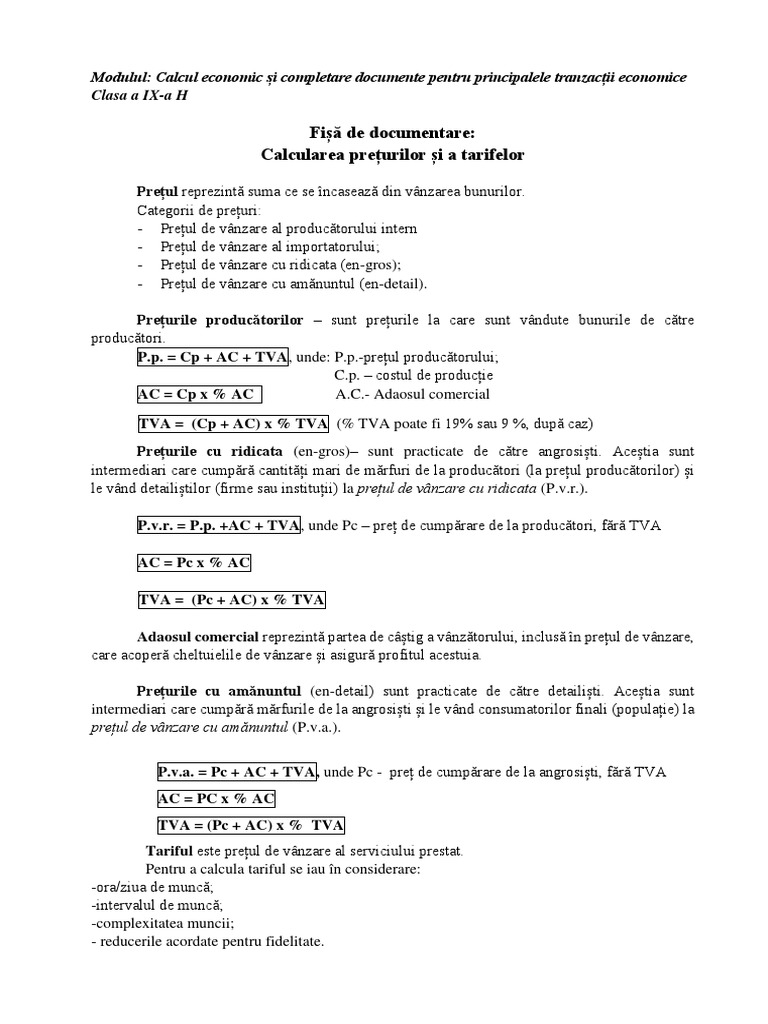Mod Calcul Pret Stoc Modalitate De Calcul Pret Gestiune