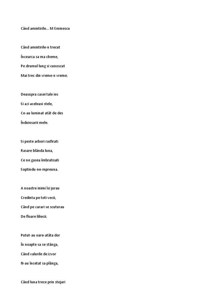 Cand Amintirile De Mihai Eminescu Poezii