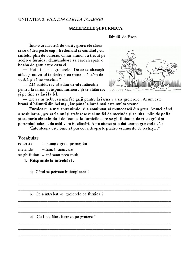 Greierele Si Furnica De Jean De La Fontaine Anideșcoală Ro