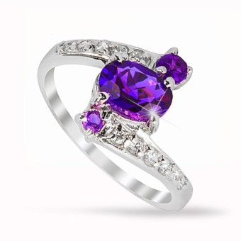 Inel Logodna Argint 925 Piatra Semipretioasa Ametist Si Placat Cu Rodiu