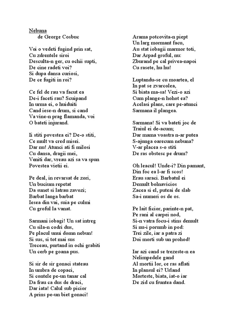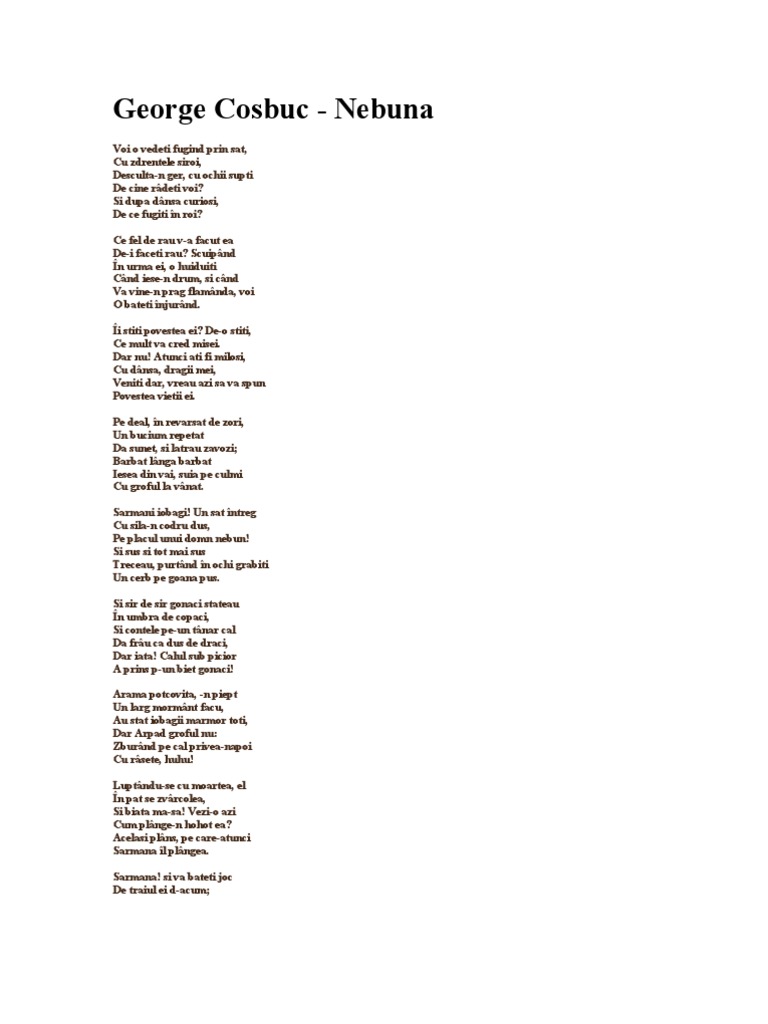 Nebuna De George Cosbuc Youtube