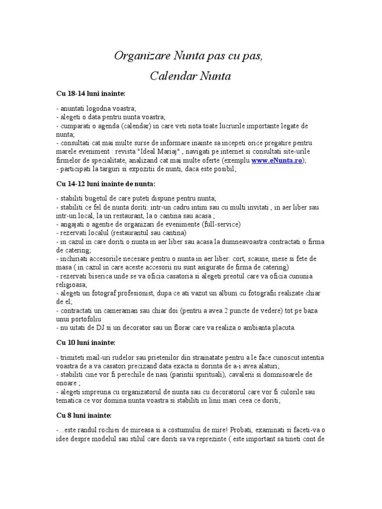 Planificare Nunta Pas Cu Pas