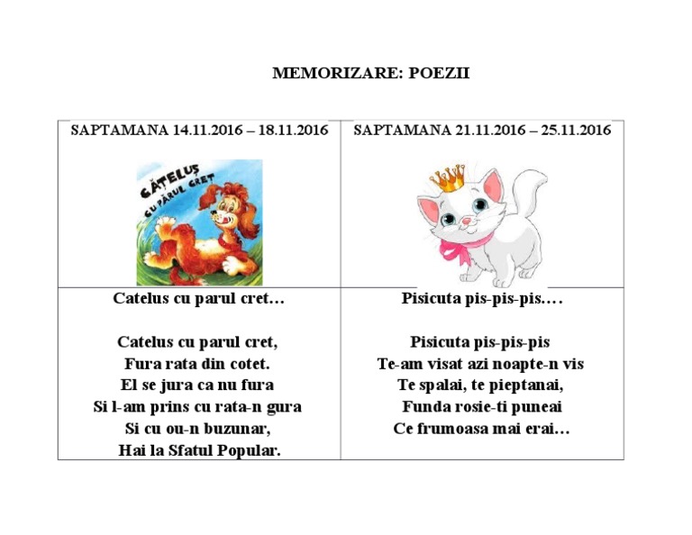 Poezii Catelus Cu Parul Cretpisicuta Pis Pis Pis Docx