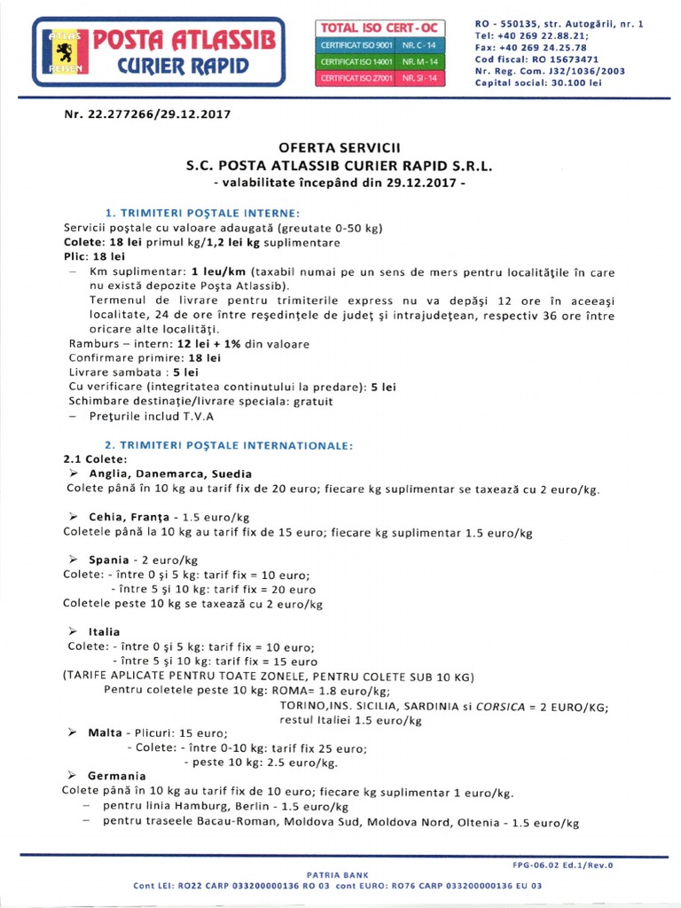 Euro Curier Posta Atlassib Moldova Curier International De Colete Si Plicuri Cu Valoare