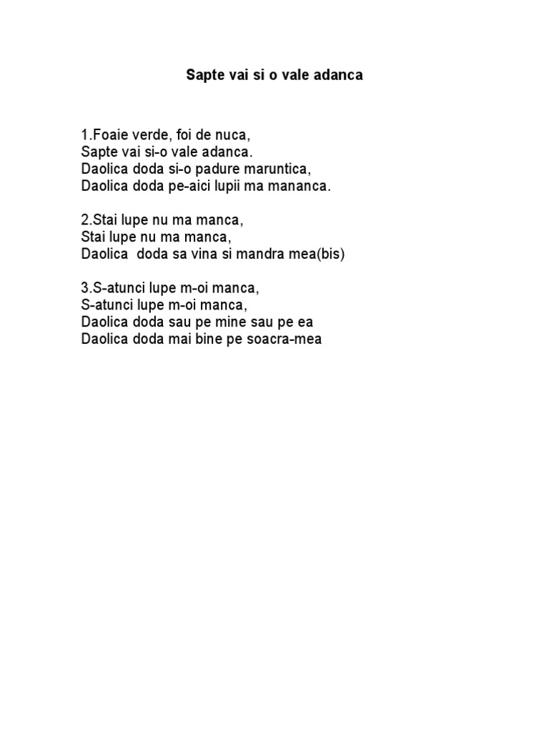 Sapte Vai Si O Vale Adanca Versuri