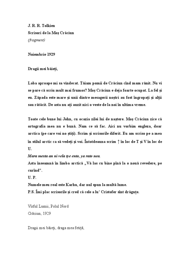 Scrisori De La Moș Crăciun De J R R Tolkien Bookaholic