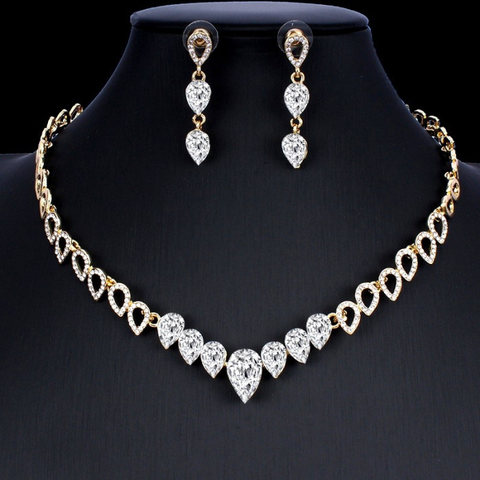 Set Bijuterii Mireasa Colier Si Cercei Placate Cu Aur Galben 18k Si Cristale Coliere Statement Bijuterii Cristale